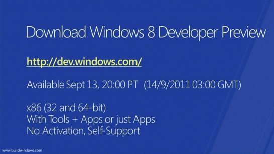 Microsoft’un Build 2011 konferansında ilk detaylarını açıkladığı Windows 8‘i merak edip kurcalamak isteyenler için Windows Yazılımcı Ön İzleme sürümü birkaç saat içinde çıkmış olacak. Microsoft’un dev.windows.com adresi üzerinden sunacağı bu sürüm 32 ve 64 bit x86 makineleri için sunulacak. Ne yazık ki, ARM tabanlı cihazlar ön izleme sürümünde kapsam dışı bırakılıyor.