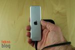 Yeni Touch Surface Remote’un en önemli özelliği üstünde dokunmatik izleme dörtgeni barındırması. Eskinin dört yönlü ve ortasında OK tuşu barındıran navigasyon sistemi yerine şimdi bütün gezinti ve seçim işlemleri izleme dörtgenine sürükleyerek ve tıklatarak yapılıyor. Menu ve Oynat/Duraklat tuşları bulunmaya devam ediyor. Ayrıca yeni Touch Surface Remote kumanda + ve – tuşları, ana ekran tuşu ve üstünde mikrofon ikonu barındıran Siri düğmesiyle birlikte geliyor. Henüz Türkiye’de Siri özellikleri desteklenmediği için bu Siri düğmesi şu an için pek bir işe yaramıyor, ancak gelecekte epey kullanılacağı bir gerçek.