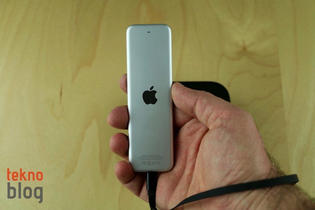 Yeni Apple TV ile birlikte büyük değişim geçirenler arasında uzaktan kumanda da bulunuyor. Önceki nesil Apple TV’lerle birlikte sunulan Apple Remote uzaktan kumanda yerine şimdi Apple’ın Touch Surface özellikli Apple TV Remote olarak adlandırdığı yeni bir uzaktan kumanda bulunuyor. Eskinin tek kalıp, gri renkli uzaktan kumandasının aksine, yeni Siri Remote siyah renkte bir ön yüz ve biraz eskiyi hatırlatan, ayrıca dar ve uzun bir iPod touch’a arkadan bakıyormuş hissi uyandıran alüminyum arka yüzle birlikte geliyor.