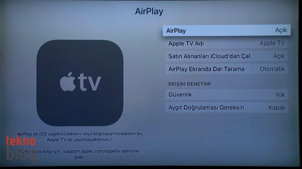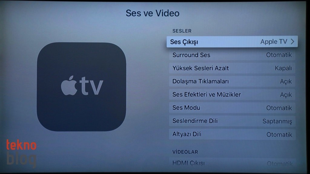 Apple TV ses tarafında 5.1 çevresel ses desteği sunuyor. Eğer uygun bir ses sisteminiz varsa bu destekten yararlanabilirsiniz. Bunun yanı sıra Bluetooth kulaklıklarla eşleştirme yapabilir, böylelikle özellikle gece yarısı oyun oynarken veya film izlerken kimseyi rahatsız etmezsiniz. Bu arada “Yüksek Sesleri Azalt” seçeneği sayesinde yüksek şiddetteki patlama ve benzeri sesleri azaltabilir, konuşmaların ön plana çıkarıldığı ve duyulabilir hâle getirildiği bir ses elde edebilirsiniz. Öte yandan AirPlay desteği yine mevcut. iOS cihazınız, Mac bilgisayarınız veya PC’deki iTunes üzerinden içerikleri Apple TV’de oynatabilir ya da iOS veya Mac cihazınızın ekran görüntüsünü Apple TV üzerinden ekrana yansıtabilirsiniz.