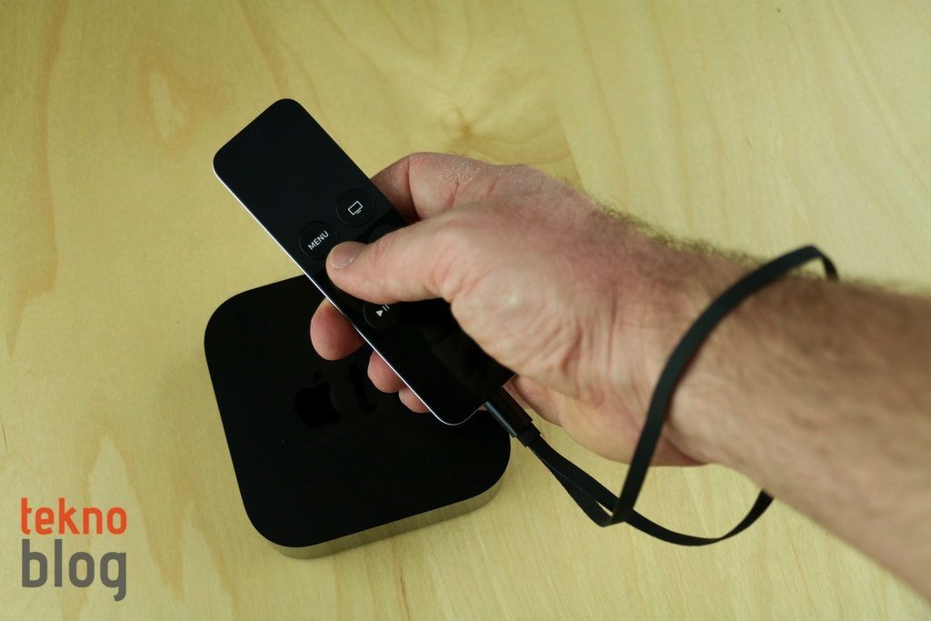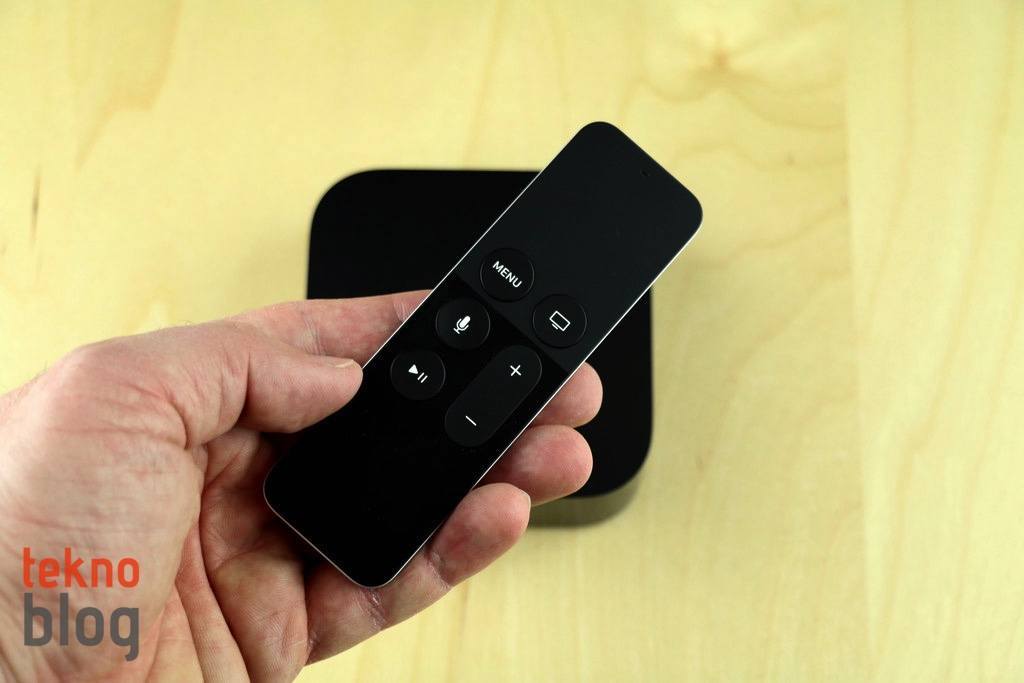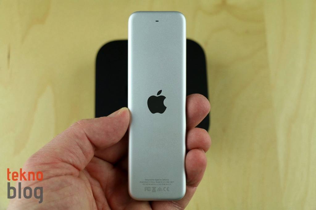 Yeni Touch Surface Remote’un en önemli özelliği üstünde dokunmatik izleme dörtgeni barındırması. Eskinin dört yönlü ve ortasında OK tuşu barındıran navigasyon sistemi yerine şimdi bütün gezinti ve seçim işlemleri izleme dörtgenine sürükleyerek ve tıklatarak yapılıyor. Menu ve Oynat/Duraklat tuşları bulunmaya devam ediyor. Ayrıca yeni Touch Surface Remote kumanda + ve – tuşları, ana ekran tuşu ve üstünde mikrofon ikonu barındıran Siri düğmesiyle birlikte geliyor. Henüz Türkiye’de Siri özellikleri desteklenmediği için bu Siri düğmesi şu an için pek bir işe yaramıyor, ancak gelecekte epey kullanılacağı bir gerçek.