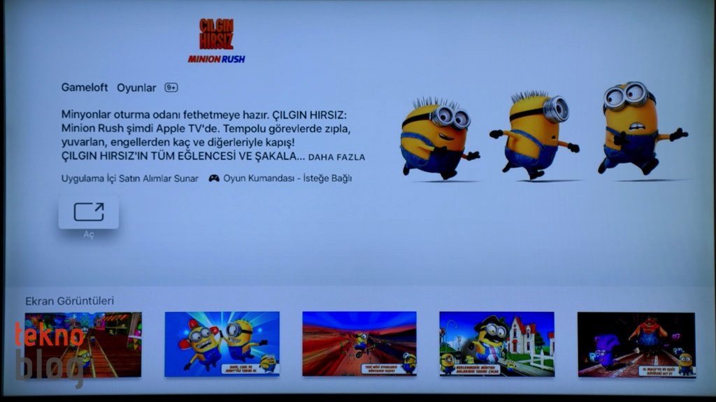 Oyun tarafında App Store daha zengin seçenekler sunuyor gibi görünüyor. Asphalt 8: Airborne, BADLAND, Just Dance, Crossy Road ve bunun gibi popüler iPhone veya iPad oyunlarının tvOS’e geldiğini görüyoruz. Bu oyunlar TV’ye özel deneyimler sunmaktan çok mobildeki versiyonun TV ekranı için ölçeklenmiş hâli gibi çalışıyor. Yine de, bu oyunları büyük ekranda oynamak güzel, Touch Surface Remote kumanda ile de kontrol bir hayli kolay, alışmak zor olmuyor. Üstelik Siri Remote’un hareket algılama kabiliyeti sayesinde Just Dance gibi oyunlara fazlasıyla hareket katmak, Apple TV üzerinden oynatılan oyunla yoğun etkileşime geçmek mümkün oluyor. Kısacası Apple TV bir Xbox One veya PlayStation 4 tadında ev konsolu seviyesinde bir oyun deneyimi sunmuyor. Onların bir kademe altında kalsa da, eğlenceli dakikalar yaşatacağı kesin.