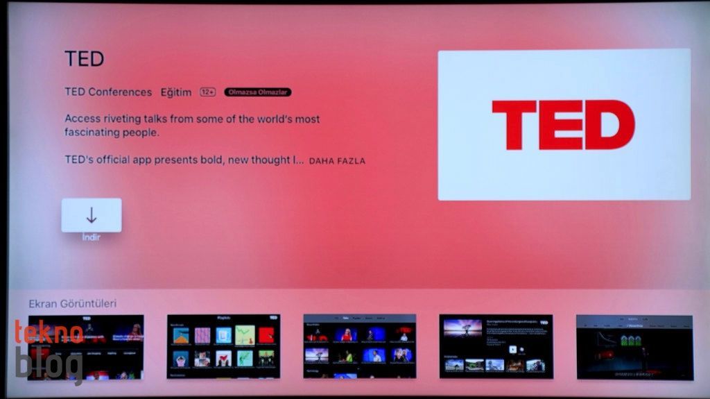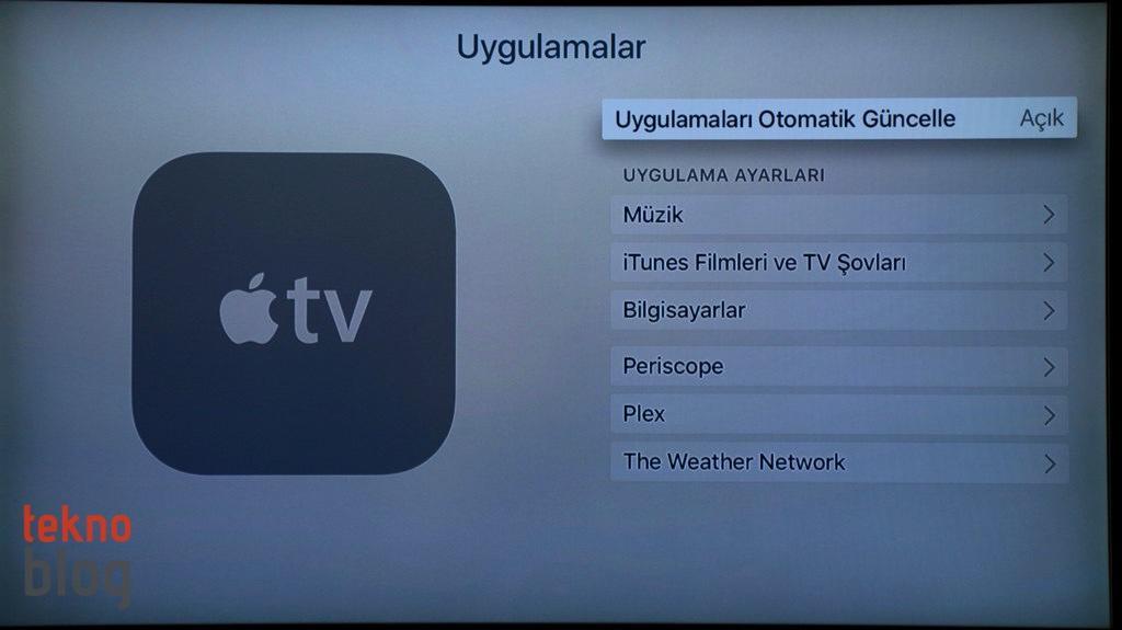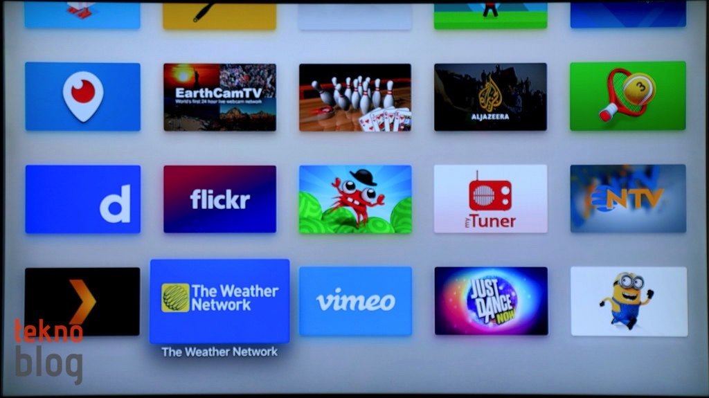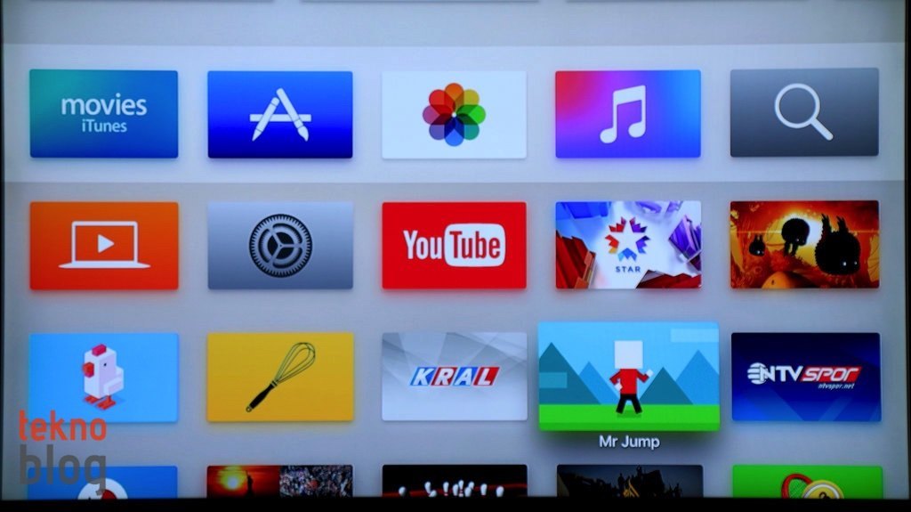 iPhone ve iPad uygulamaları arasındaki evrensellik tvOS uygulamaları için de geçerli oluyor. Eğer bir uygulamayı iPhone veya iPad’inize yüklediyseniz, o uygulamanın tvOS versiyonu da yüklenebilir şekilde sizi bekliyor. Eğer daha önce iOS cihazınızdan bir uygulamayı satın aldıysanız, aynı uygulamanın tvOS versiyonu için yeniden para ödemenize gerek kalmıyor. Uygulamalar tvOS ana ekranına eski Apple TV’nin ekranında olduğu gibi büyük dikdörtgen bloklar şeklinde diziliyor.