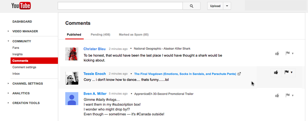 Dün itibarıyla her bir YouTube kullanıcısının videoları için bekleyen yorumları kontrol edebilecekleri, beğenileri görebilecekleri, yorumları kaldıracakları veya şikayet edebilecekleri bir Yorumlar sayfası bulunuyor.