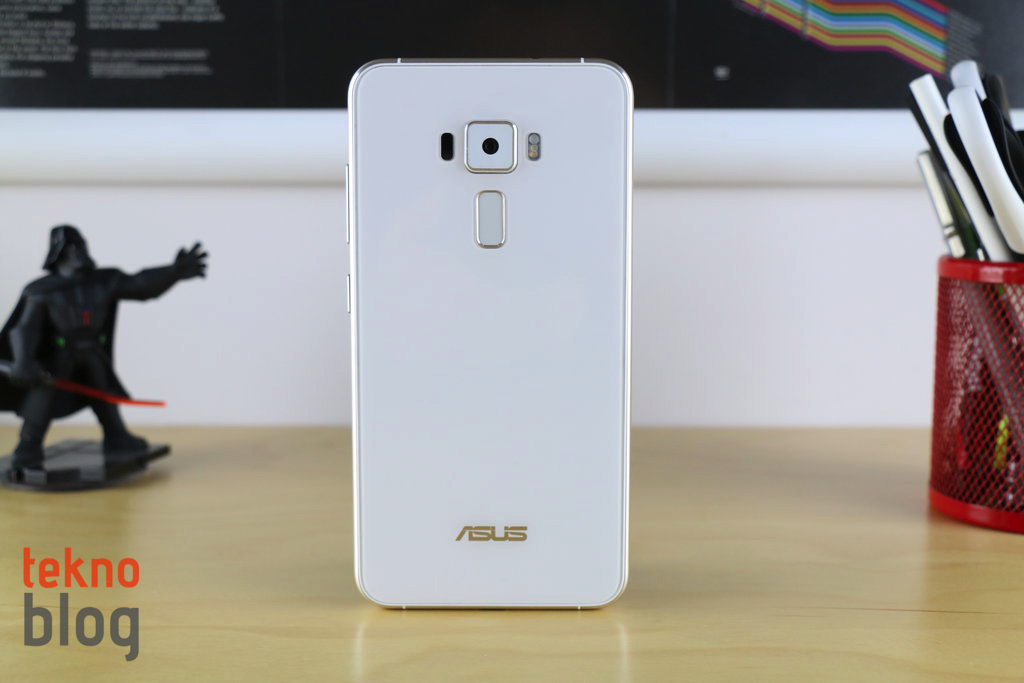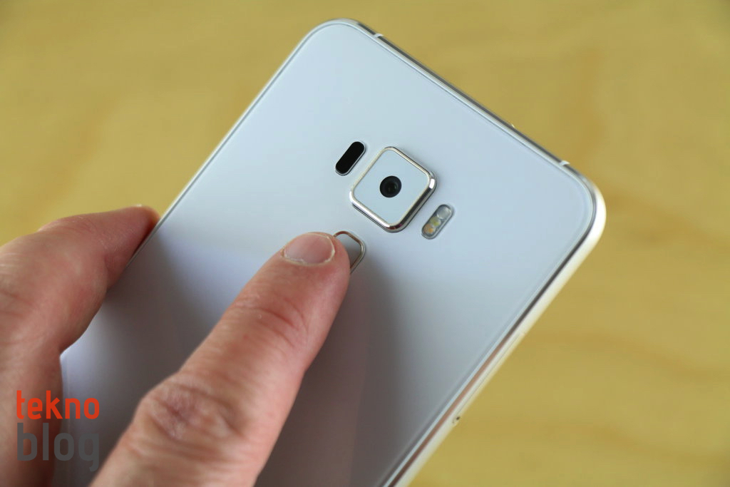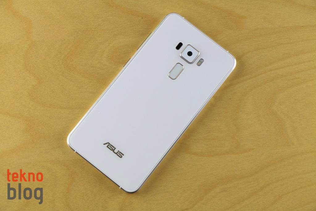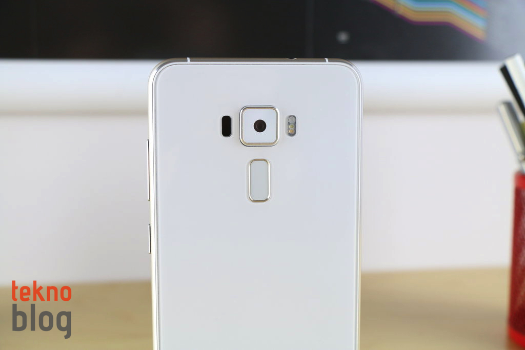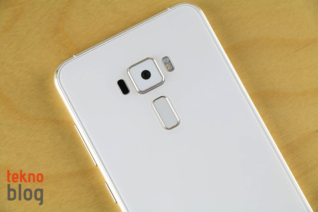Arka tarafta kameranın hatırı sayılır bir çıkıntı yaptığını görüyoruz. Asus, kullandığı safir lens sayesinde kameranın çiziklere karşı dayanıklı olduğuna dikkat çekiyor. Kameranın iki yanında çift renkli LED flaşı ve lazer otomatik odak sistemini görüyoruz. Kamera grubunun altında da parmak izi okuyucusu bulunuyor. Alt kenarın hemen yakınında ise Asus logosunu görüyoruz.