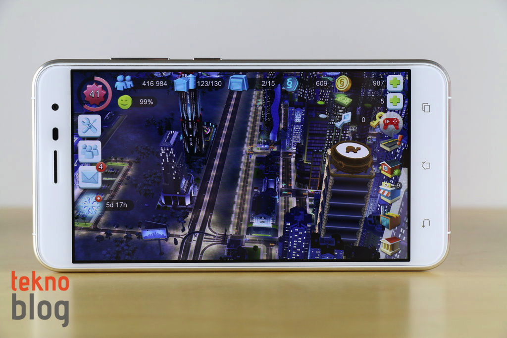 Telefon aynı anda birden fazla uygulamayı kaldırma konusunda iyi bir performans sergiliyor. Snapdragon 625 işlemci ise günlük kullanımda sorun çıkarmıyor. Uygulamalar hızlı şekilde açılıyor, bir uygulamadan diğerine seri şekilde geçiş sağlanıyor. Oyun konusunda da ZenFone 3 iyi bir grafik sergiliyor, ancak genel anlamda daha üst seviyedeki telefonların gerisinde kaldığını anlamak mümkün oluyor. Örneğin telefonda yüklü olarak sunulan Simcity BuildIt adlı oyunda, şehirler arasında geçiş yapmak, bir iPhone veya iPad’dekine göre biraz daha uzun sürüyor, şehirlerin yüklenmesi daha uzun zaman alıyor. Bu arada ZenFone 3’te de daha önce Samsung Galaxy S7 ve S7 edge’de gördüğümüze benzeyen bir oyun aracı yer alıyor. Oyunları açtığınızda ekranın herhangi bir köşesine rahatlıkla sürüklenip bırakılabilen bir oyun kumandası ikonu göreceksiniz. Buna tıkladığınızda sistem kaynaklarını hızlandırma, ekran görüntüsü alma gibi kullanışlı araçları bulacağınız bir menü göreceksiniz.