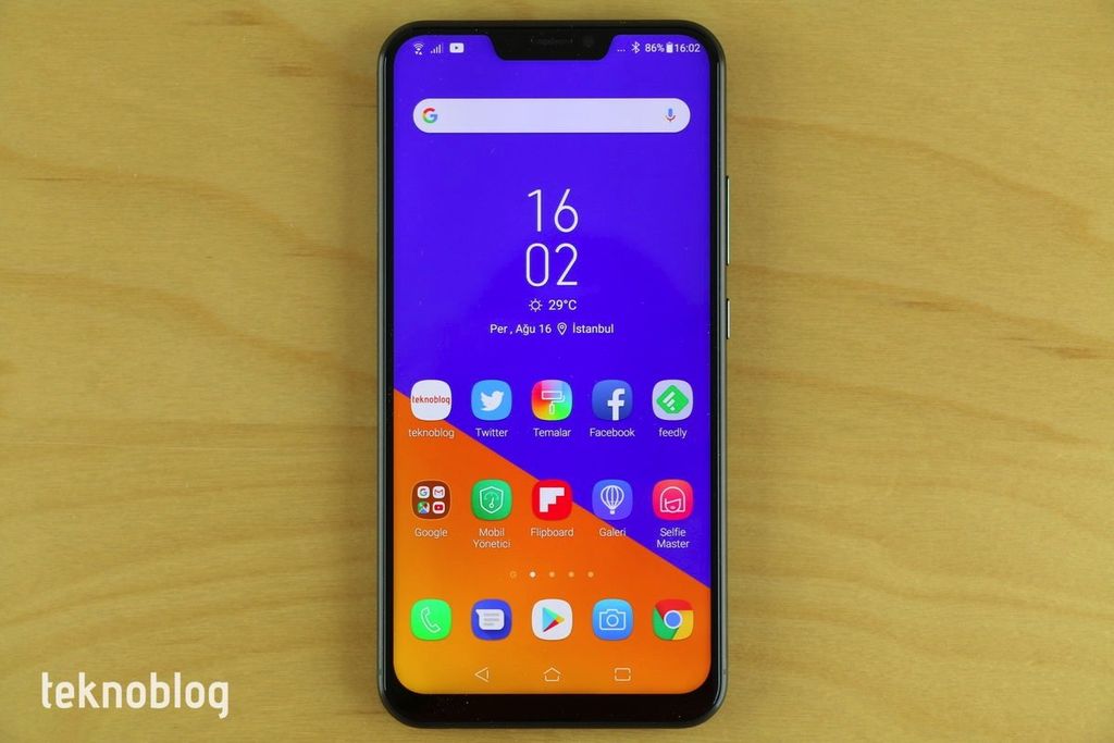 ZenFone 5Z’de de 6.2 inç, 18.7:9 görüntü oranlı ve 1080 x 2246 piksel çözünürlüklü Full HD+ Super IPS+ ekran yer alıyor. Bu büyüklükteki ekranlarda daha yüksek çözünürlük değerlerini de görüyoruz, ancak 1080p de gayet makul. Ekranın görüntü oranının 16:9’dan farklı olması nedeniyle, özellikle videoları izlerken videonun sağ ve sol kısımlarında siyah çubuklar görebilirsiniz. YouTube uygulamasında içeriğin tamamen ekrana yayılmasını sağlayabilirsiniz, bu hâlde görüntünün bir kısmı çentiğin arkasında kalıyor. Netflix ve bazı uygulamalarda ise çentiğin başlangıç noktası sınır kabul ediliyor, sığdırma yapıldığında görüntü alanından kayıp daha az oluyor. Ancak çentik tarafında görüntüye çekilen sınır düz bir çizgi olduğu için, bir tarafı dik, bir tarafı kavisli olan düzensiz bir ekran çerçevesi ortaya çıkıyor. Umarız Asus, yazılım güncellemesiyle bu görünümü düzeltir.