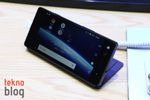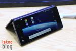 ZTE’nin MWC 2018’deki standında Axon M de sergilenen telefonlar arasında yer alıyor. Biz de bu farklı tasarıma sahip telefonu bir ön incelemeden geçirme fırsatı elde ettik. Sergi alanındaki güvenlik mekanizması nedeniyle ZTE Axon M’in kanatlarını tamamen kapatıp onu normal bir akıllı telefon formuna sokmak mümkün olmuyor. Bu da telefonun kullanımı hakkında tam bir fikir elde etmemizin önüne geçiyor.